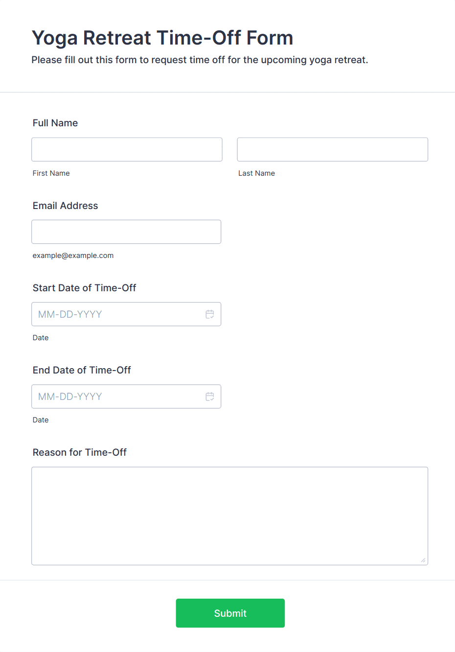 • For job applications, include fields for personal information, education, work experience, references, and file uploads for resumes or cover letters.