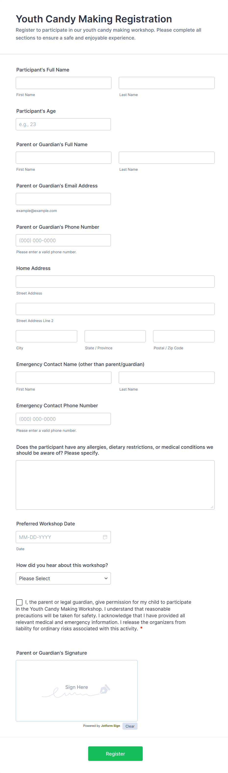 A Workshop Registration Form is a form template designed to streamline the process of attendee registration. This hassle-free, easy-to-use Jotform template is a game-changer for event organizers, saving time and reducing errors.
