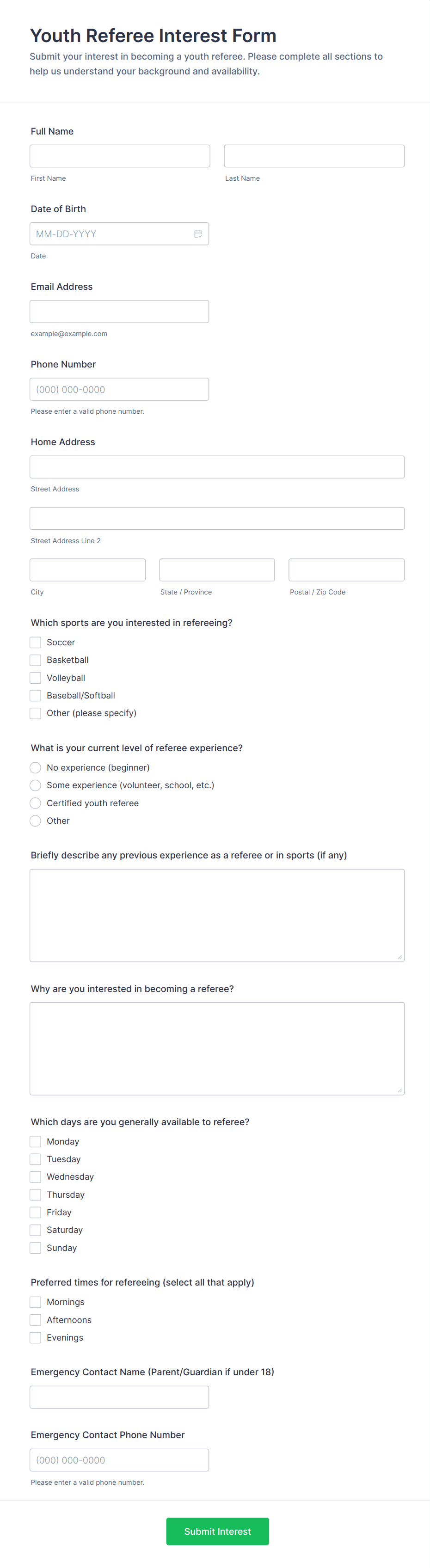 Sports form templates are suitable for league administrators, coaches, event organizers, school athletic departments, fitness instructors, and volunteers.