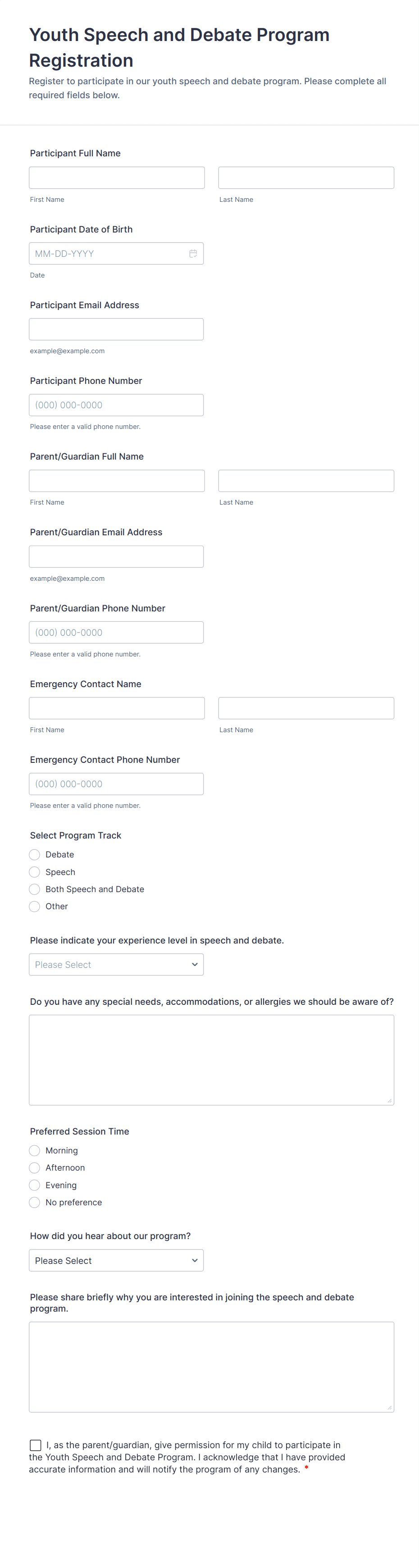 • For event or course registrations, include fields for session selection, preferences, or special requirements.