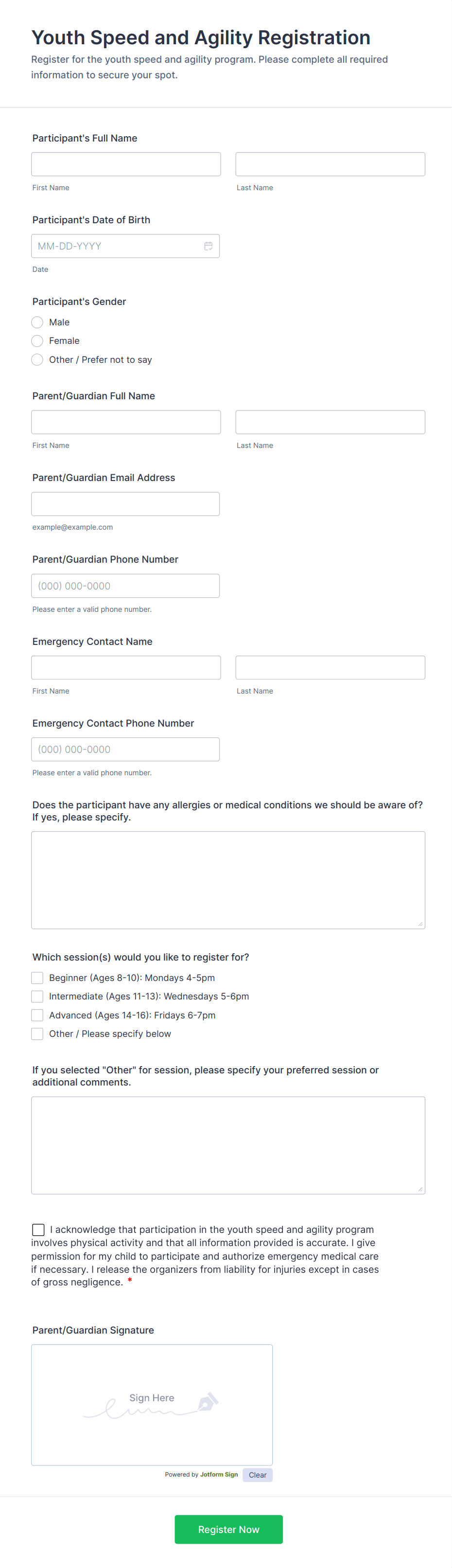 A youth sports registration form is used to register a child for a sports program. Jotform has the right solution for you!