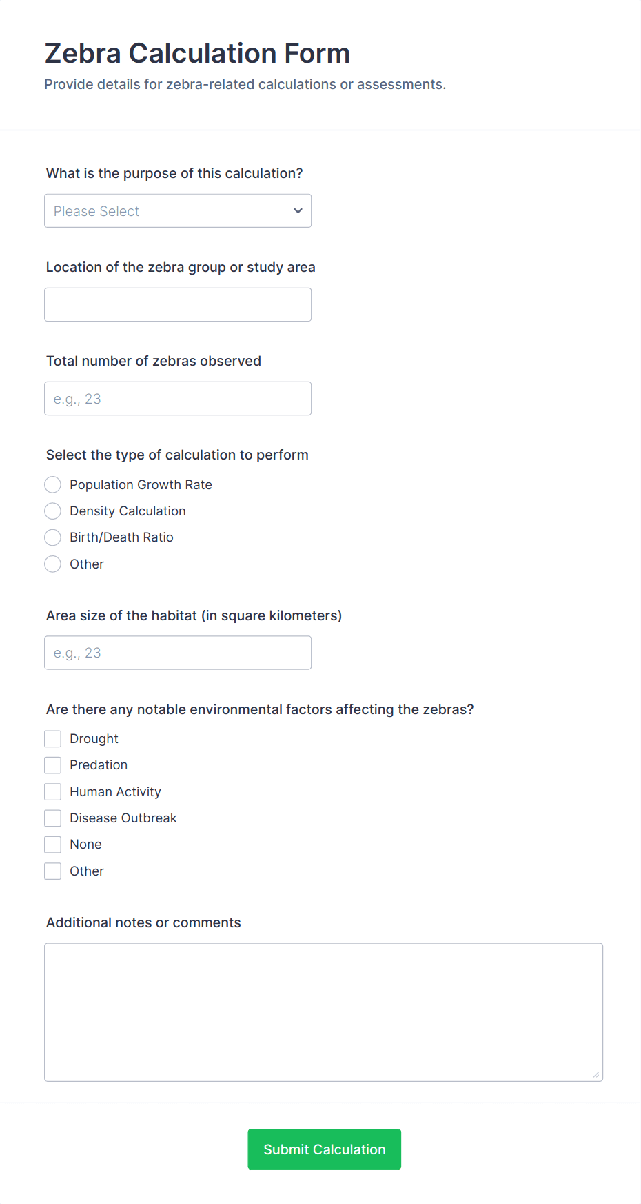 3. What information is typically collected in a calculation form?