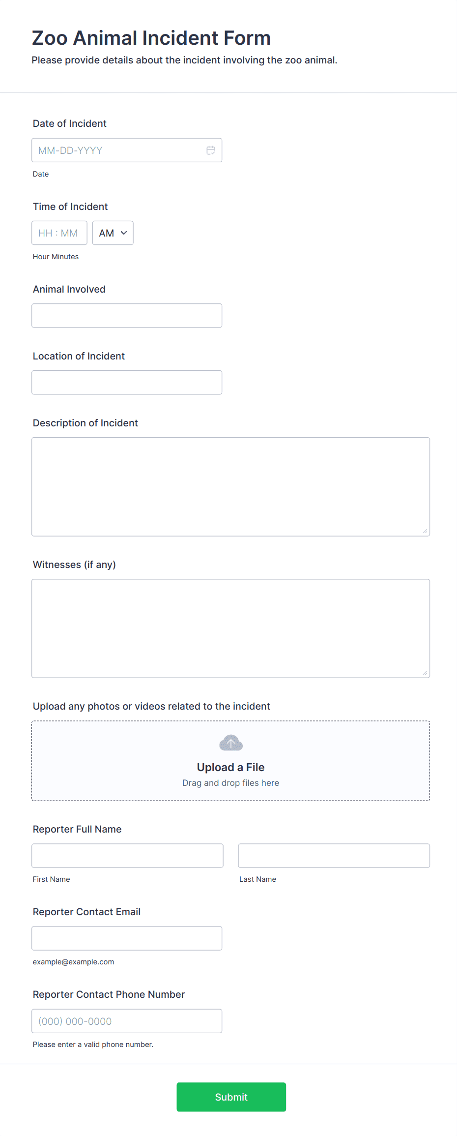 3. What information should be included in an incident report form?