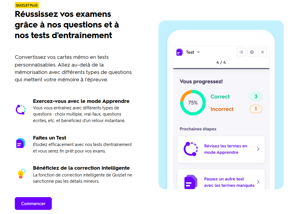 Avec Quizlet, tant les enseignants que les étudiants peuvent accéder à des outils d’apprentissage et d’étude qui permettent une expérience éducative complète. Les enseignants utilisent la plateforme pour créer des plans de cours et des cartes mémo, ces dernières constituant un atout populaire pour les étudiants qui préparent leurs examens. En plus, pour ce qui est de faire des tests et des quiz interactifs, Quizlet propose aussi des outils comparables à ceux de Kahoot!