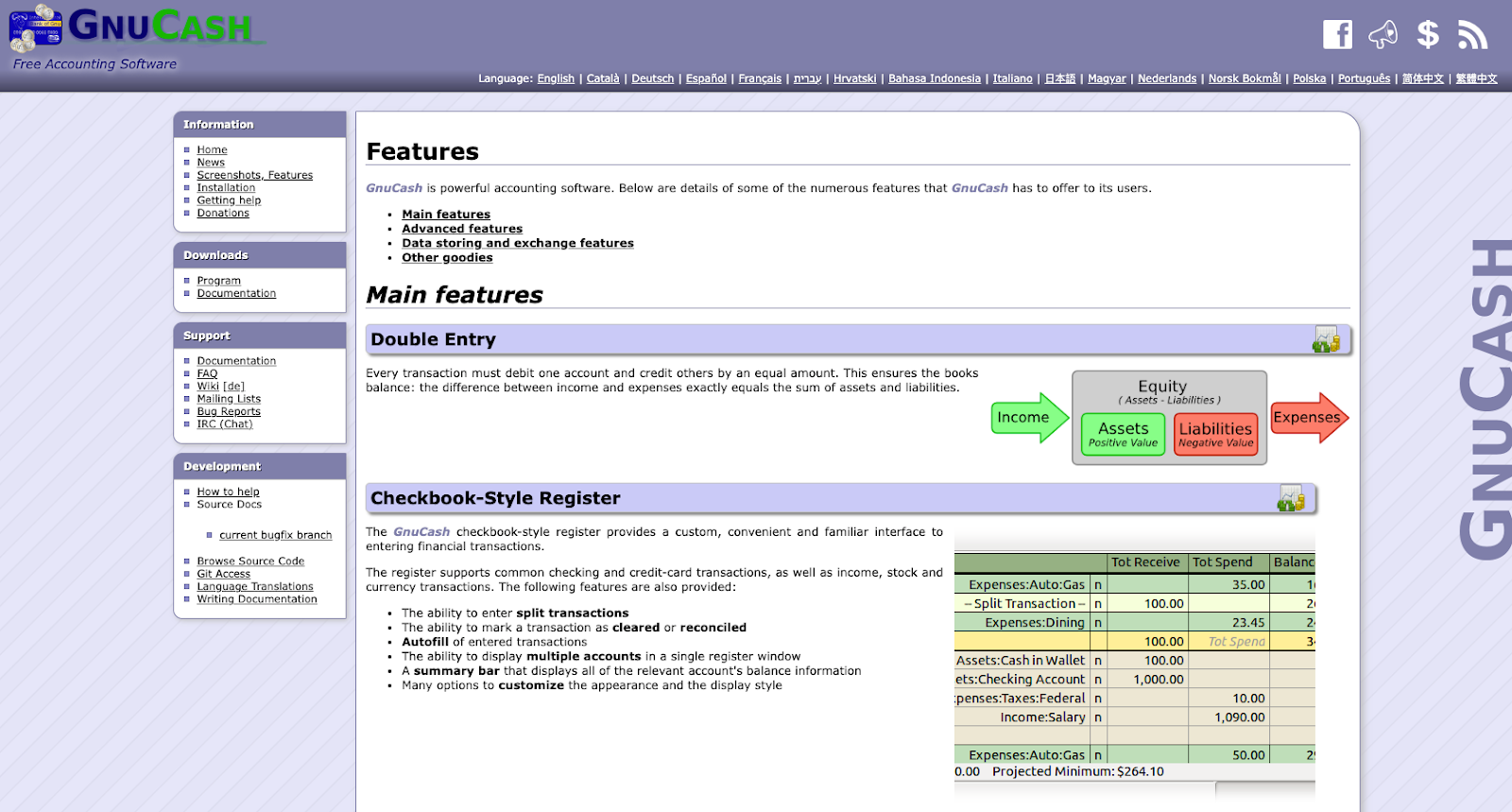 GnuCash applique la méthode de comptabilité en partie double. Les entreprises internationales apprécieront le fait que cette solution prend en charge de multiples devises, tandis que ses fonctionnalités, telles que le suivi des dépenses, le rapprochement des comptes bancaires et la gestion des transactions, seront utiles à la plupart des entreprises.