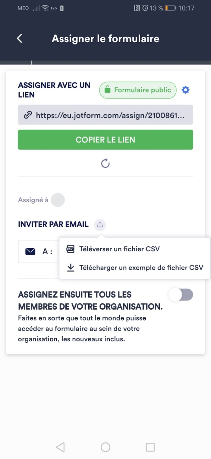 4. Téléchargez un fichier CSV et assignez un formulaire à un grand groupe de personnes
