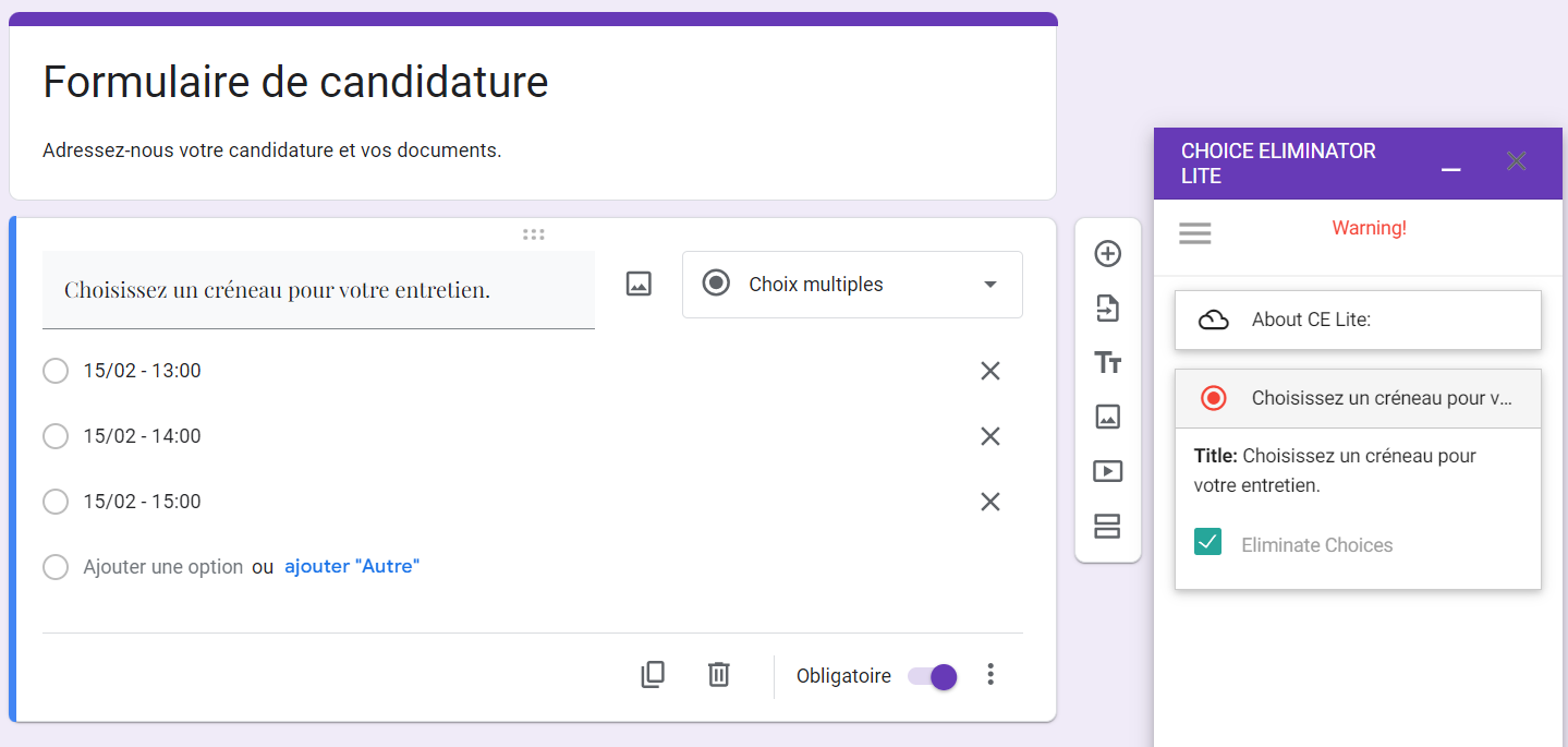 Comment ajouter Choice Eliminator à un formulaire Google Forms ?