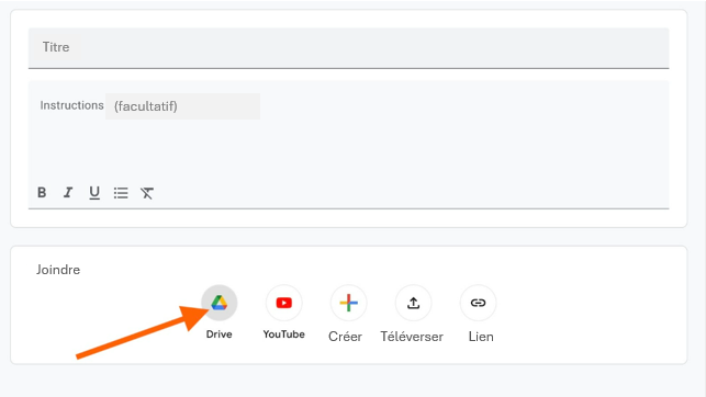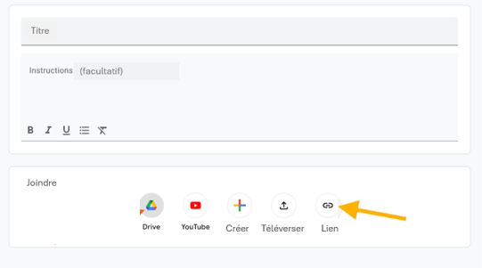 - Dans l’espace d’assignement des devoirs, sous Joindre, cliquez sur l’icône de lien.