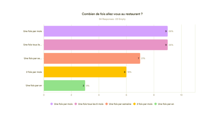 - Données ordinales. Si les réponses tombent dans un ordre logique, vous collectez des données ordinales. Par exemple, avec une question d’enquête comme “À quelle fréquence visitez-vous notre restaurant ?” et des réponses potentielles telles que ‘rarement’, ‘une fois par an’, ‘une fois par trimestre’, ‘une fois par mois’ et ‘une fois par semaine’. Ces informations vous aideront à voir à quelle fréquence votre client interagit avec votre produit ou service.
