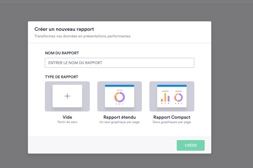 Vous pouvez générer automatiquement un rapport d’aspect professionnel – avec un ou deux graphiques par page – ou commencer avec un rapport vierge.