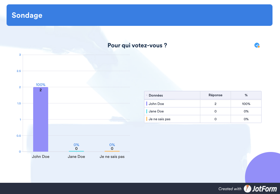 Vous n’avez qu’à créer un formulaire en ligne, le partager, puis ensuite utiliser le Générateur de Rapports de Jotform pour créer une présentation élégante en utilisant les données que vous avez collectées via votre formulaire.