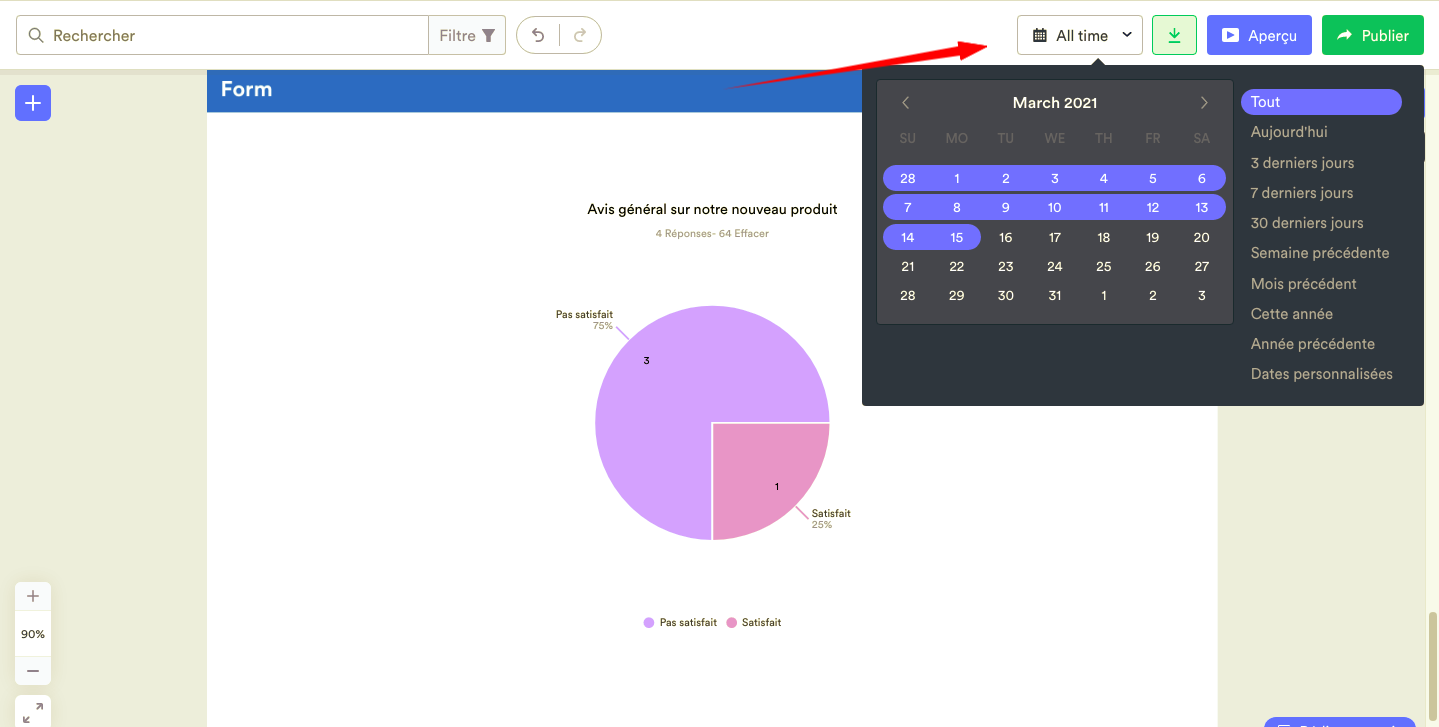 Le Générateur de Rapports de Jotform peut analyser les réponses soumises dans un certain laps de temps ou filtrer les données de votre rapport en fonction de réponses spécifiques à certaines questions afin que vous puissiez glaner des informations significatives et pertinentes.