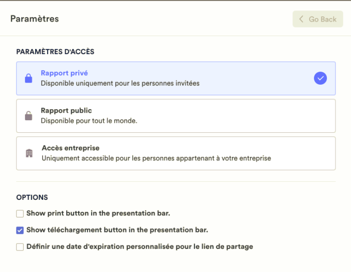 Il est même possible de protéger votre rapport afin de pouvoir contrôler qui peut consulter votre rapport, ce qu’il peut en faire et pendant combien de temps il peut y accéder.