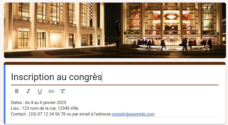 - Modifiez le titre du formulaire et la description pour décrire votre propre événement