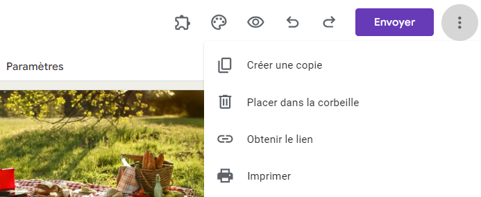 Si vous avez déjà votre formulaire ouvert, vous pouvez dupliquer un formulaire Google Forms en seulement trois étapes.
