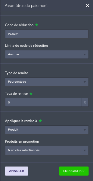 - Déterminer votre code promo