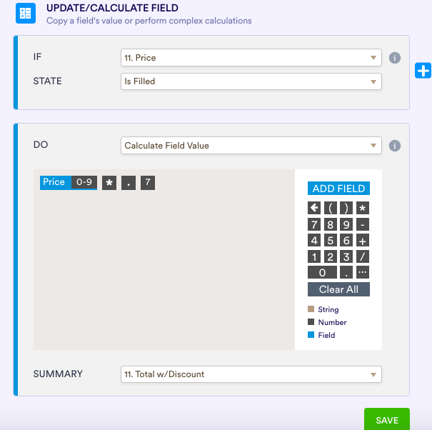 Pour une approche plus ponctuelle, les petites entreprises peuvent optimiser leurs campagnes Black Friday en utilisant une logique conditionnelle (essentiellement un outil de calcul de champs) pour appliquer automatiquement des remises aux champs de formulaire individuels.