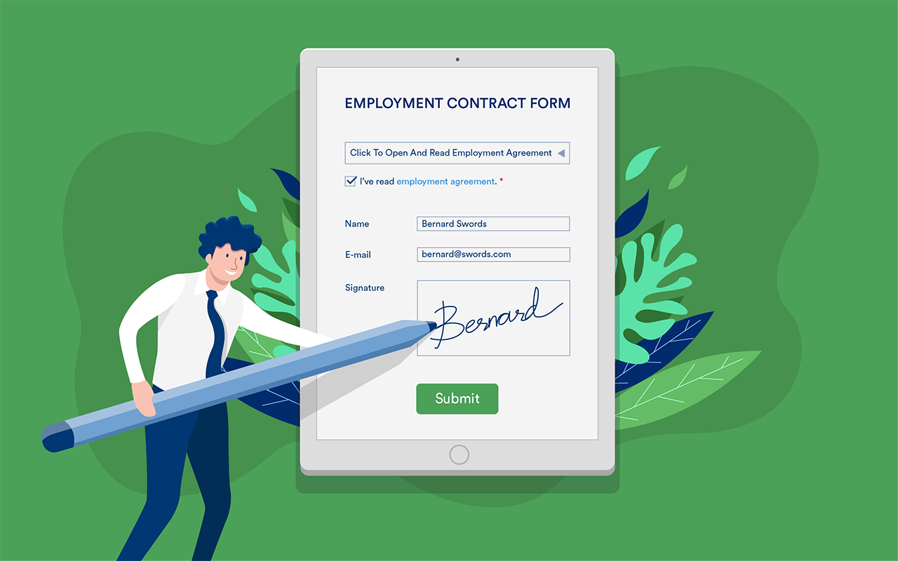 Les contrats sont fondamentaux dans le commerce. Ce sont les moyens par lesquels toutes les parties prenantes à un accord montrent qu’elles comprennent leurs engagements. Les contrats électroniques sont tout aussi valides que les contrats papiers si vous étiez amené à poursuivre une action en justice, mais ils sont beaucoup plus faciles et moins coûteux à produire que les contrats papiers.