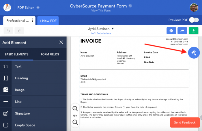 En fin de compte, l’éditeur PDF de Jotform exploite la puissance de l’outil de collecte de données pour créer des documents professionnels et facilement partageables qui peuvent être téléchargés, imprimés ou envoyés par email en toute simplicité.