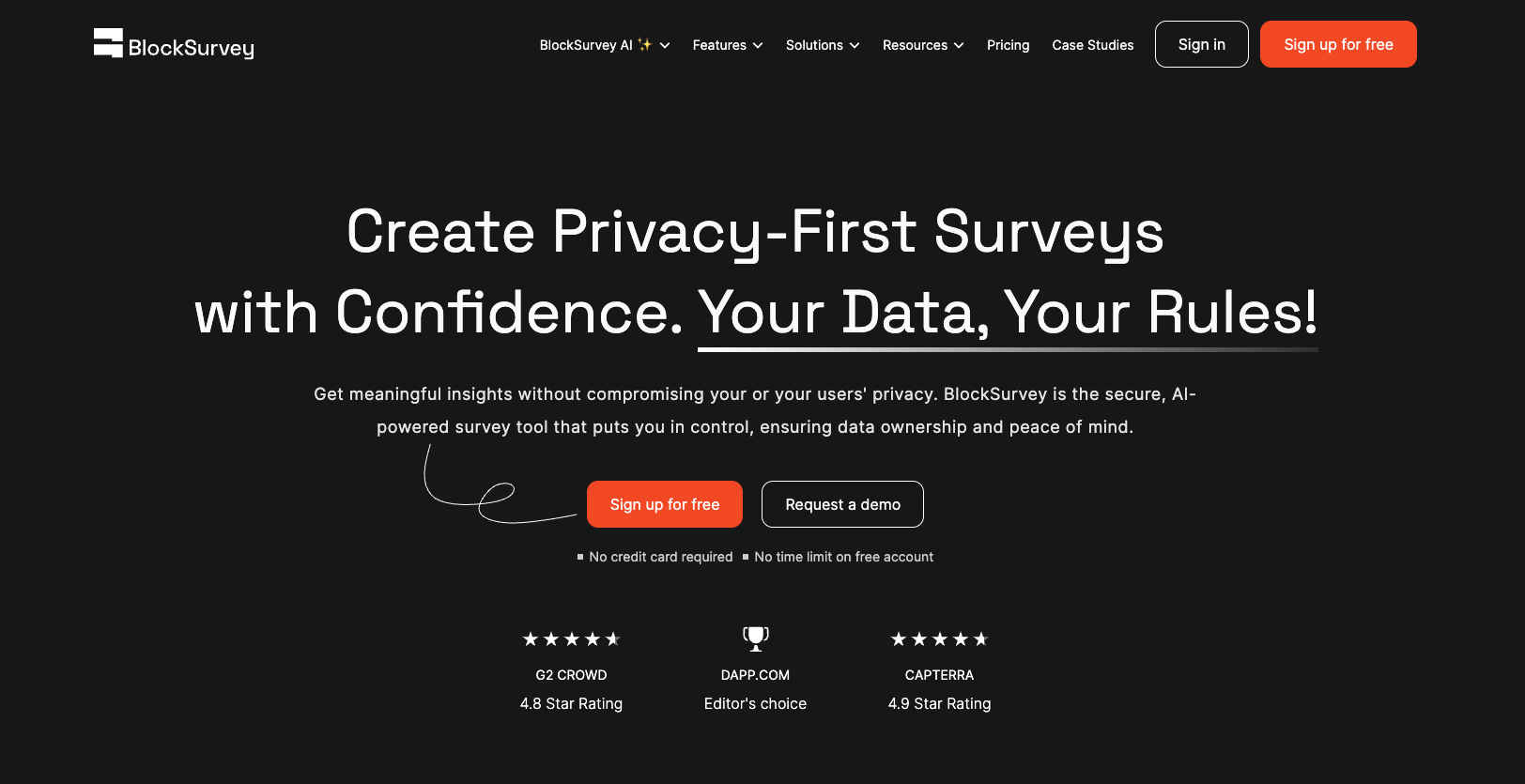 14. BlockSurvey : Meilleur logiciel générateur de formulaires pour les sondages privés