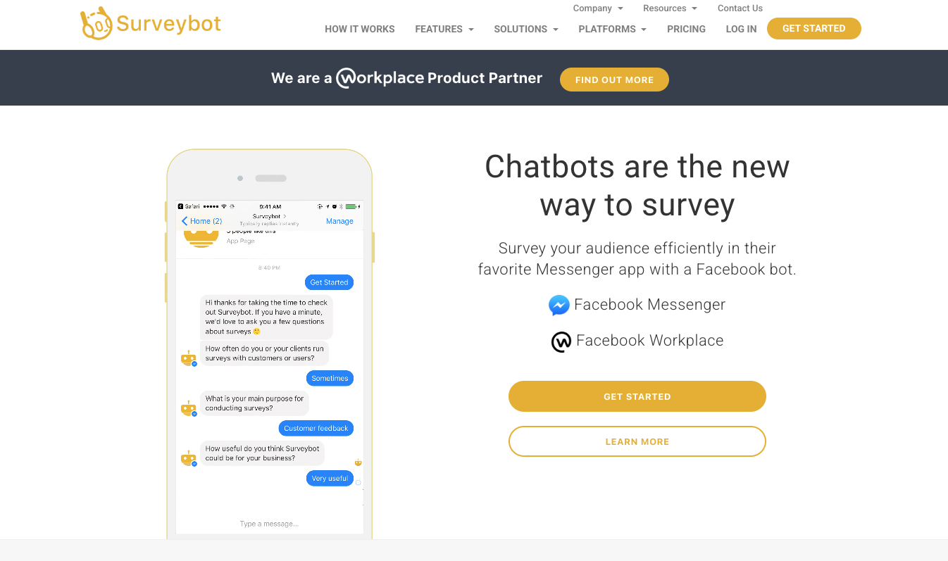 Quand vous menez la plupart de vos affaires sur Facebook, cliquer pour en sortir peut ajouter un niveau de friction qui réduit les taux d’engagement et de conversion. Au lieu d’ouvrir un nouvel onglet pour remplir le formulaire, posez vos questions directement via Facebook Messenger en utilisant Surveybot, un générateur de formulaires taillé juste pour cette niche.