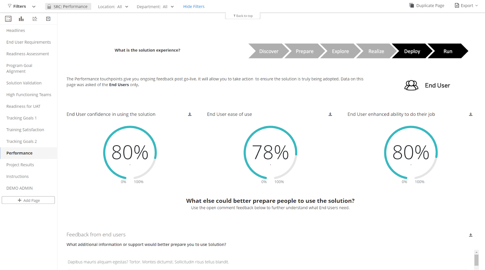 - Avantages : analyse avancée des données et informations prédictives, boucles de rétroaction en temps réel qui permettent une action immédiate, mesures du cycle de vie des employés.