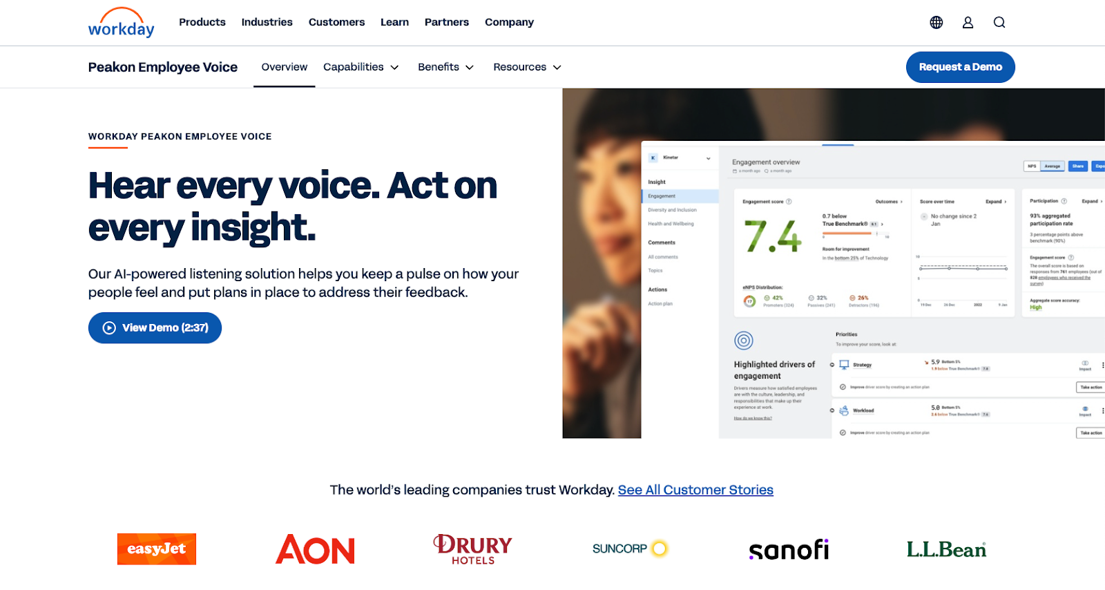 Désormais intégrée à Workday, Peakon est une plateforme d’engagement des collaborateurs basée sur les données, qui recueille des commentaires en temps réel grâce à des enquêtes personnalisées. Sa force réside dans des analyses avancées et des informations exploitables. Cet outil aide les entreprises à améliorer l’expérience, l’engagement et la fidélisation de leurs collaborateurs grâce à des données complètes.