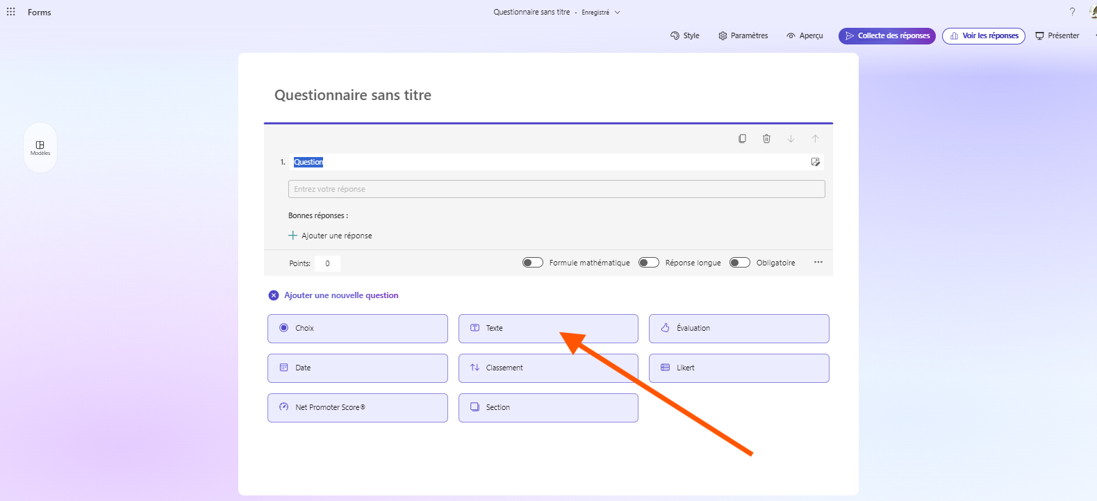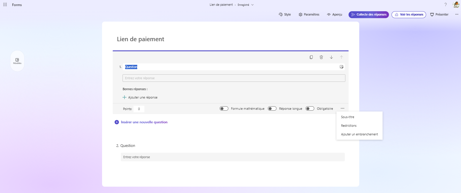 - Sélectionnez « Ajouter une nouvelle question » pour générer une nouvelle question