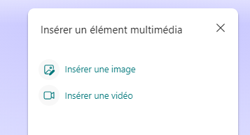 - Donnez un titre à votre question, puis sélectionnez le bouton Insérer, coller ou faire glisser un média situé à droite de la zone de texte.