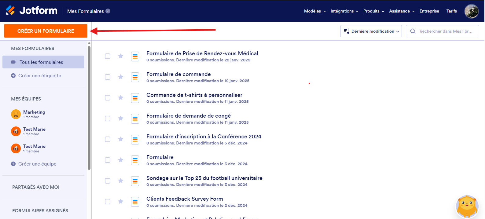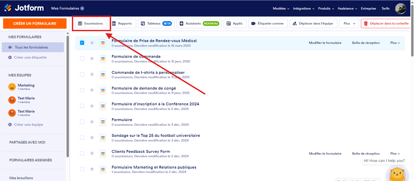 - De retour dans Jotform, accédez à la page Mes formulaires. Cliquez sur votre formulaire pour le sélectionner.