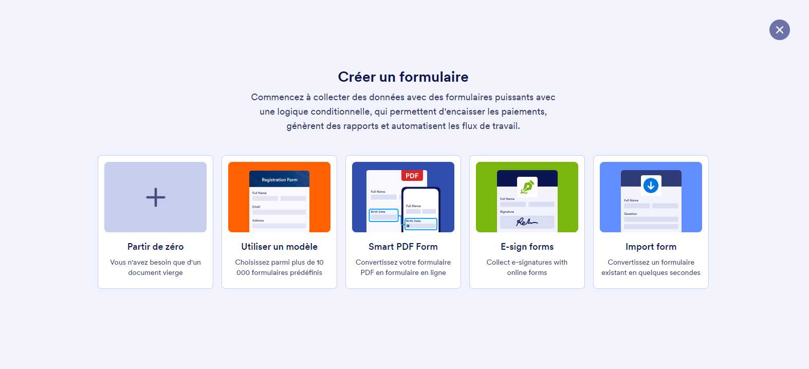 Étape 2 : Choisissez un modèle de formulaire ou créez un formulaire en partant de zéro