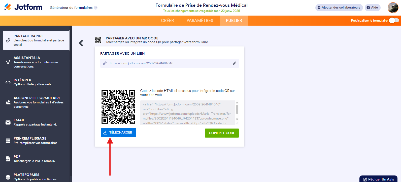 Étape 3 : Générez et téléchargez un code QR pour votre formulaire