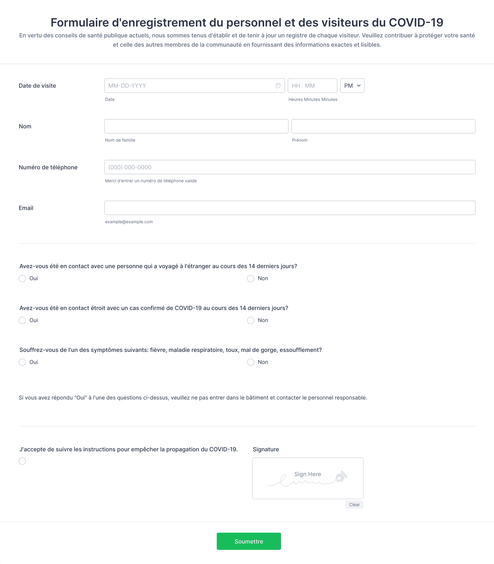 Les formulaires santé sont généralement exploités par le service administratif des établissements de santé et peuvent faciliter le traitement de la facturation et des assurances ainsi que la conformité légale et réglementaire. Remplir soigneusement les formulaires santé aide les établissements de santé à respecter les lois et réglementations relatives à la confidentialité des patients et à la sécurité des données. Dans l’ensemble, les formulaires de santé sont essentiels pour garantir que les dossiers sont maintenus en bon ordre et que les soins sont de la meilleure qualité possible.