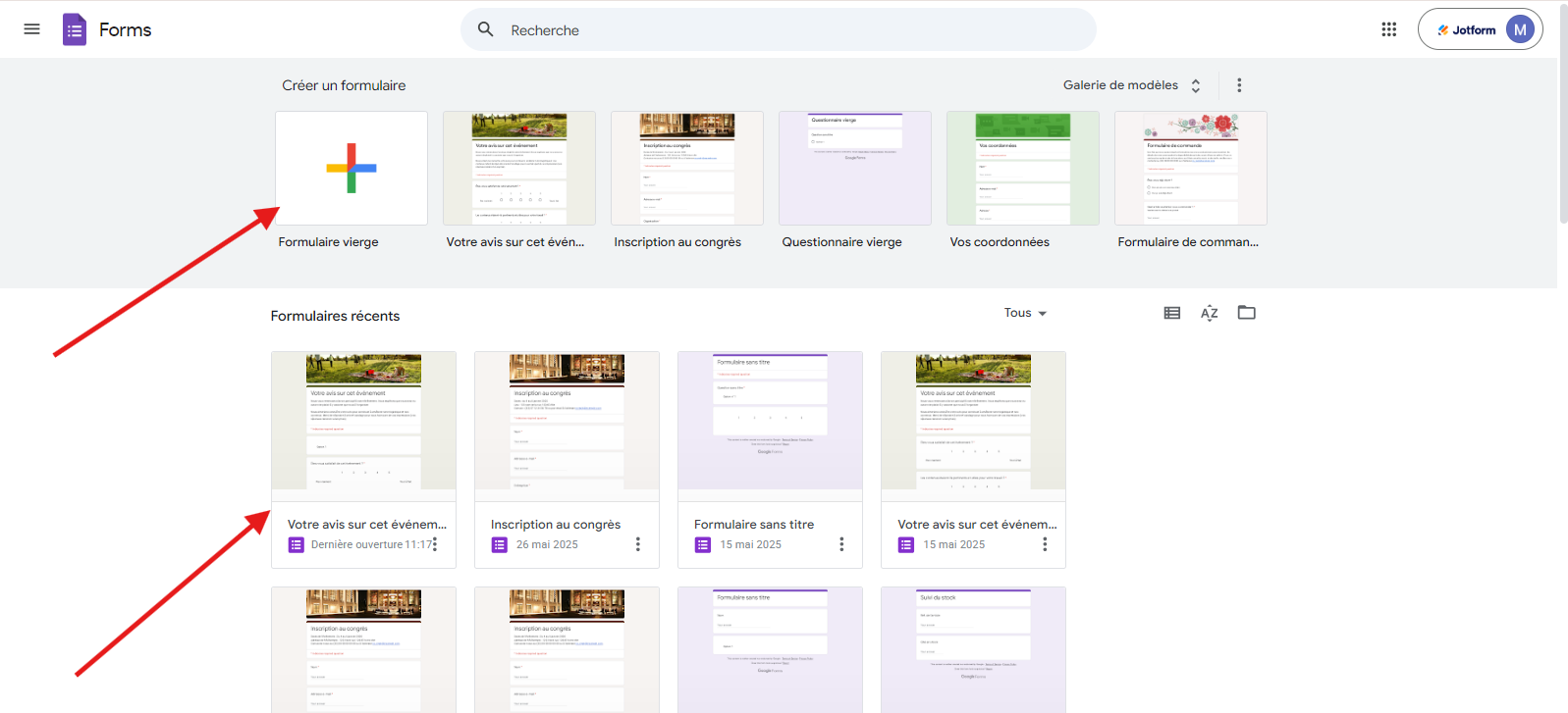 - Créez un formulaire vierge ou sélectionnez un modèle.