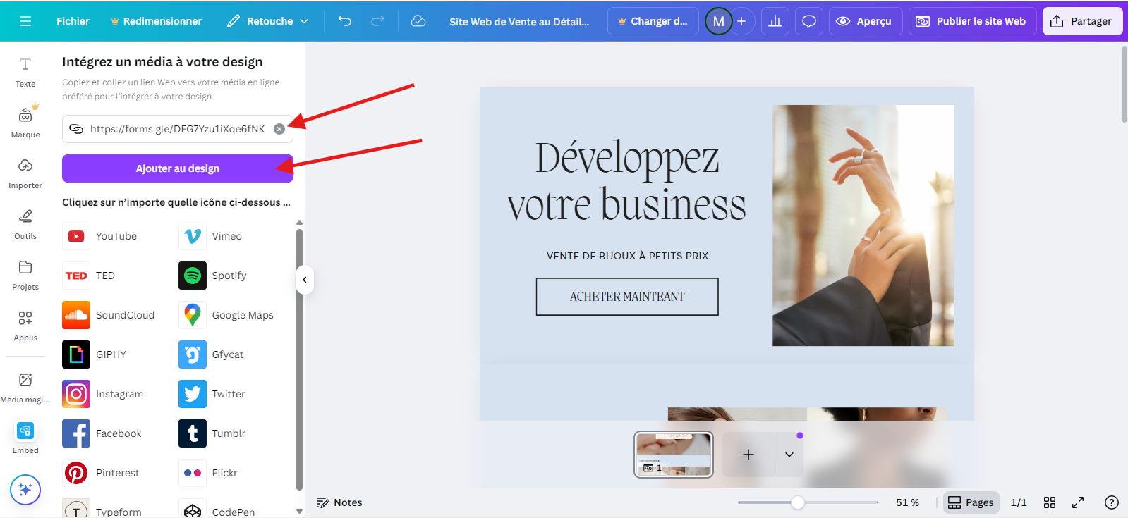 Les étapes pour intégrer un formulaire Google Forms à un site Canva