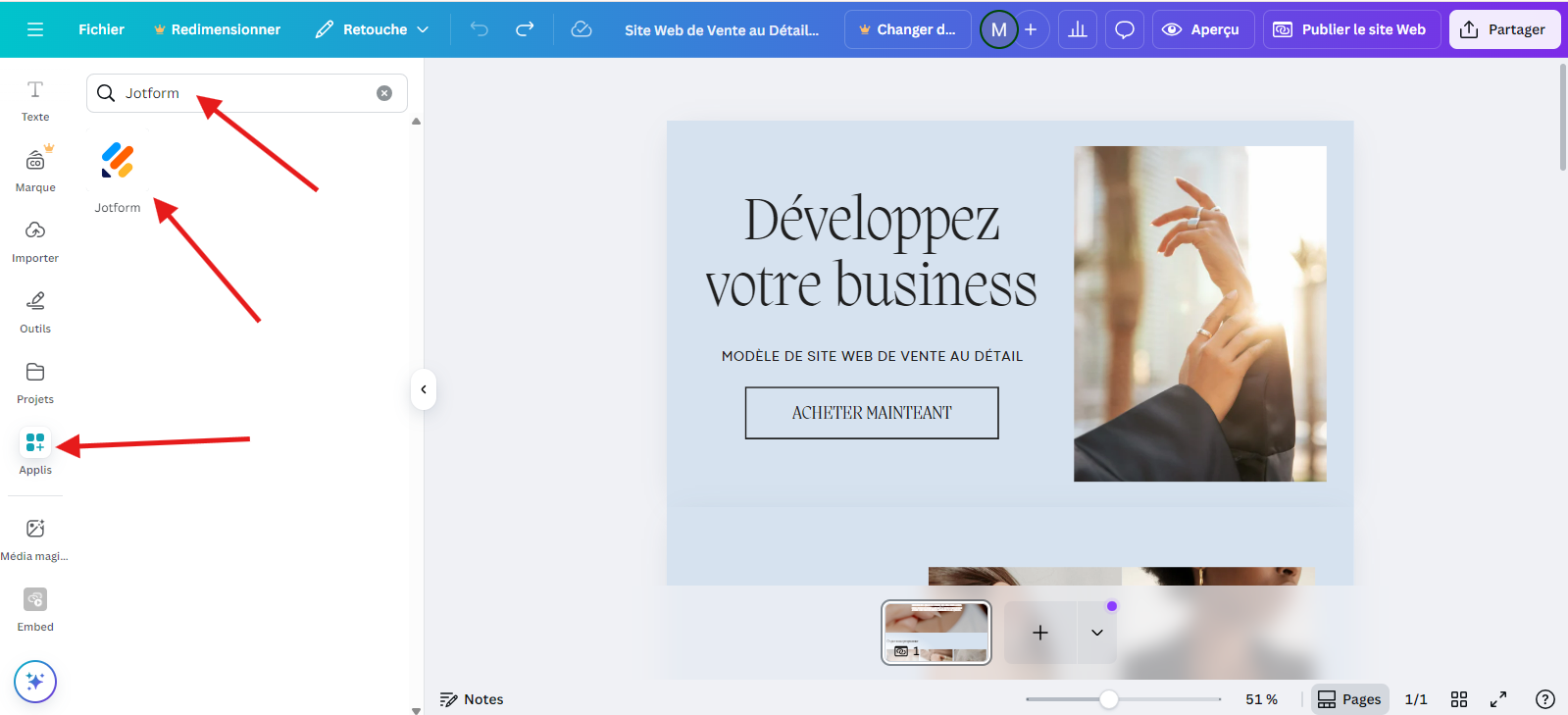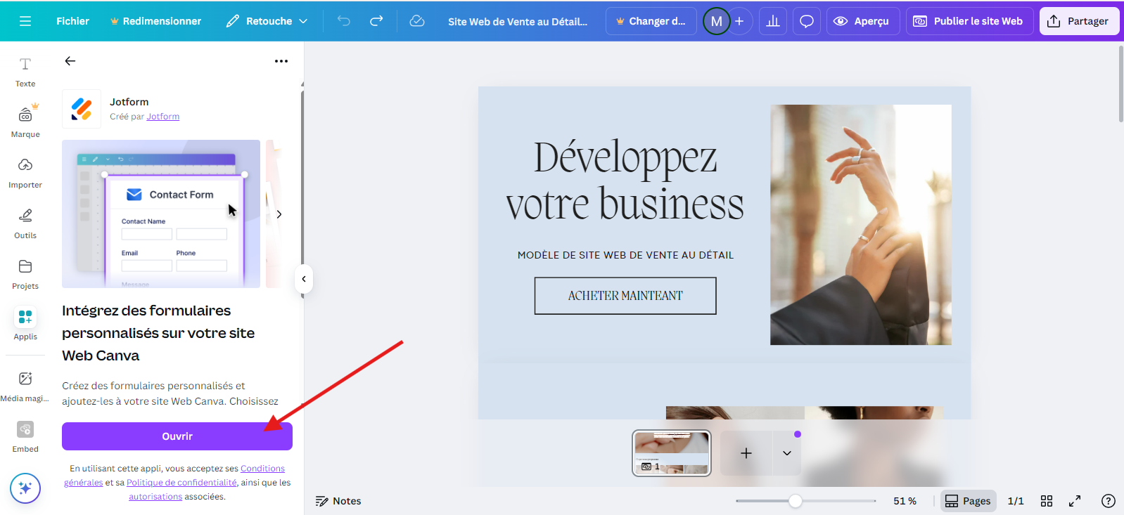 Comment ajouter un formulaire Jotform à un site Canva ?
