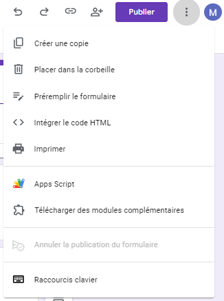 Ajoutons maintenant Formfacade. Cliquez sur les trois points verticaux dans le coin supérieur droit du formulaire Google, puis sur Télécharger des modules complémentaires dans la liste déroulante qui apparaît.