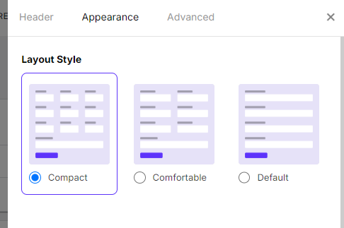 Un volet s’ouvre à droite, cliquez sur l’onglet Appearance et sélectionnez Compact dans l’onglet Layout style. Cliquez alors sur le bouton Save en bas à droite.