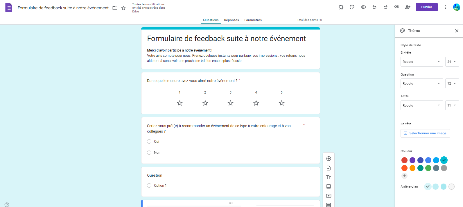 - Ajoutez des questions en fonction de vos besoins.