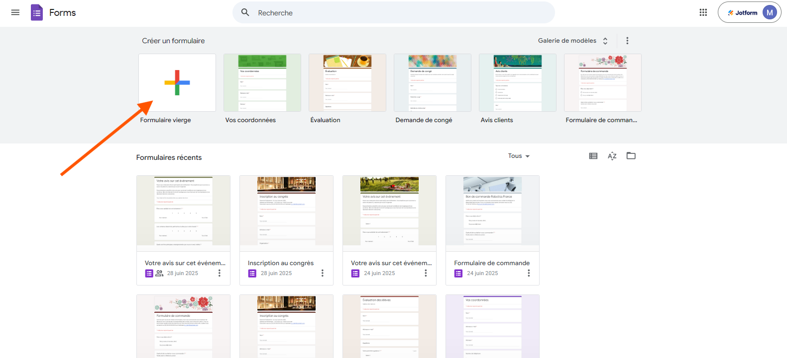 - Choisissez un modèle ou créez un nouveau formulaire.