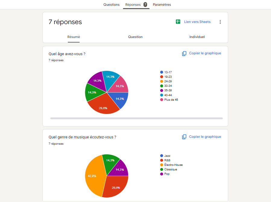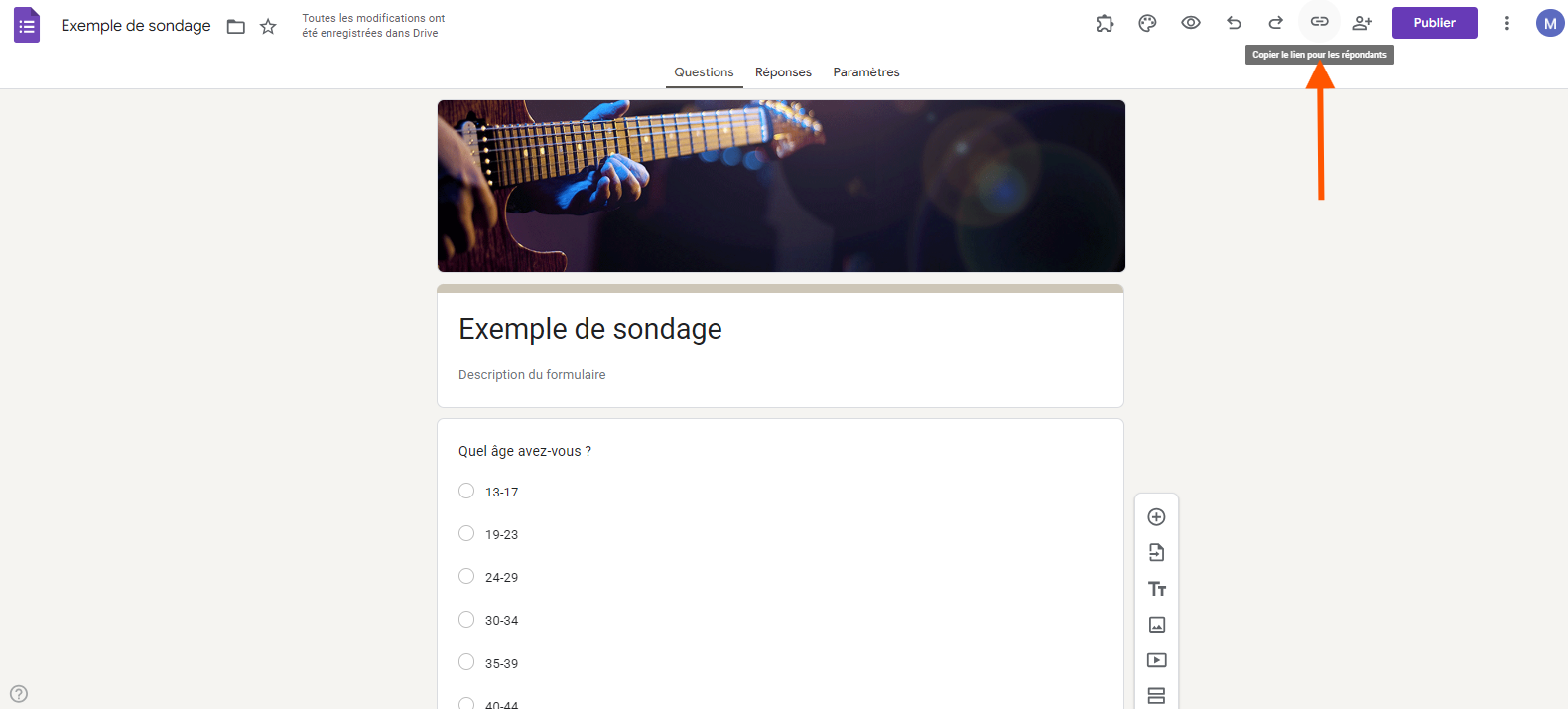 Vous pouvez également copier le lien de réponses pour partager votre formulaire avec les destinatiares.