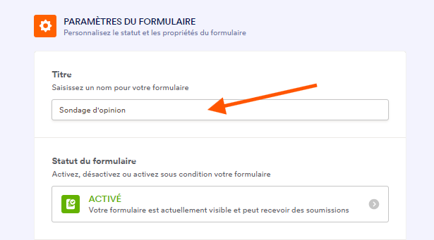- Cliquez sur l’onglet Paramètres pour attribuer un titre à votre sondage.