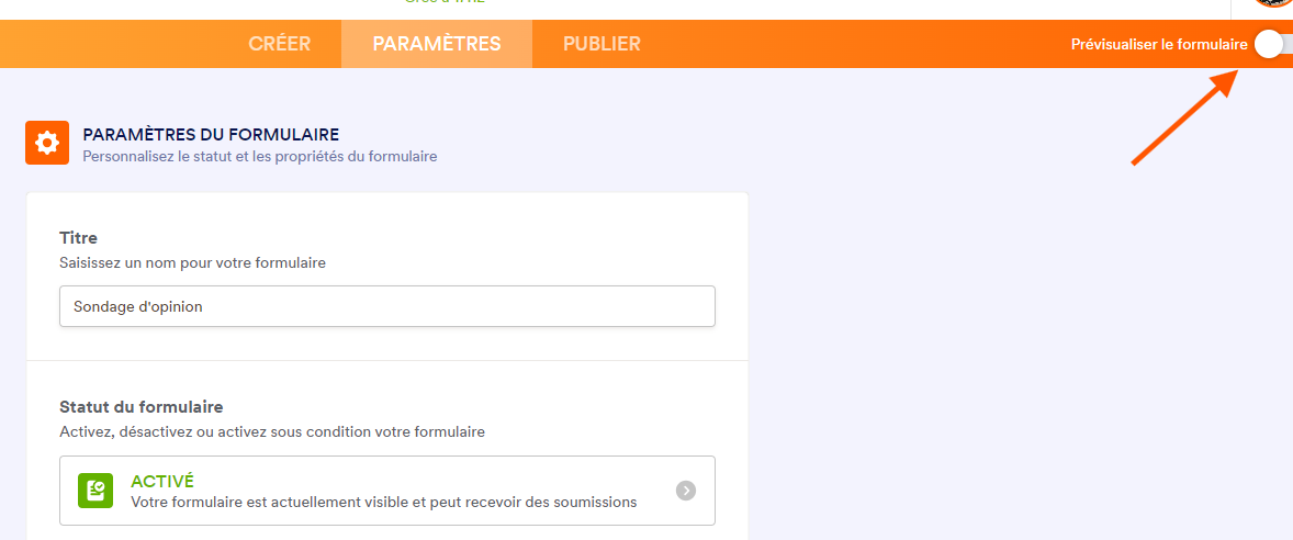 - Activez le bouton bascule Prévisualiser le formulaire pour découvrir à quoi ressemblera votre sondage une fois publié.