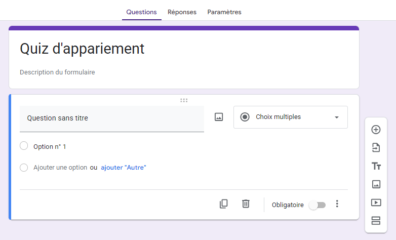 - Saisissez votre question à appariement dans le champ Question sans titre.