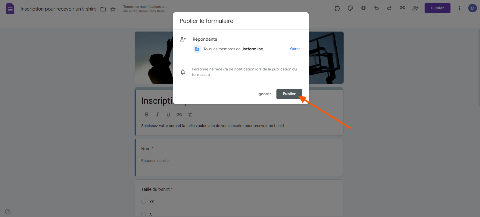 - Cliquez sur Publier pour que les répondants puissent accéder à votre formulaire.