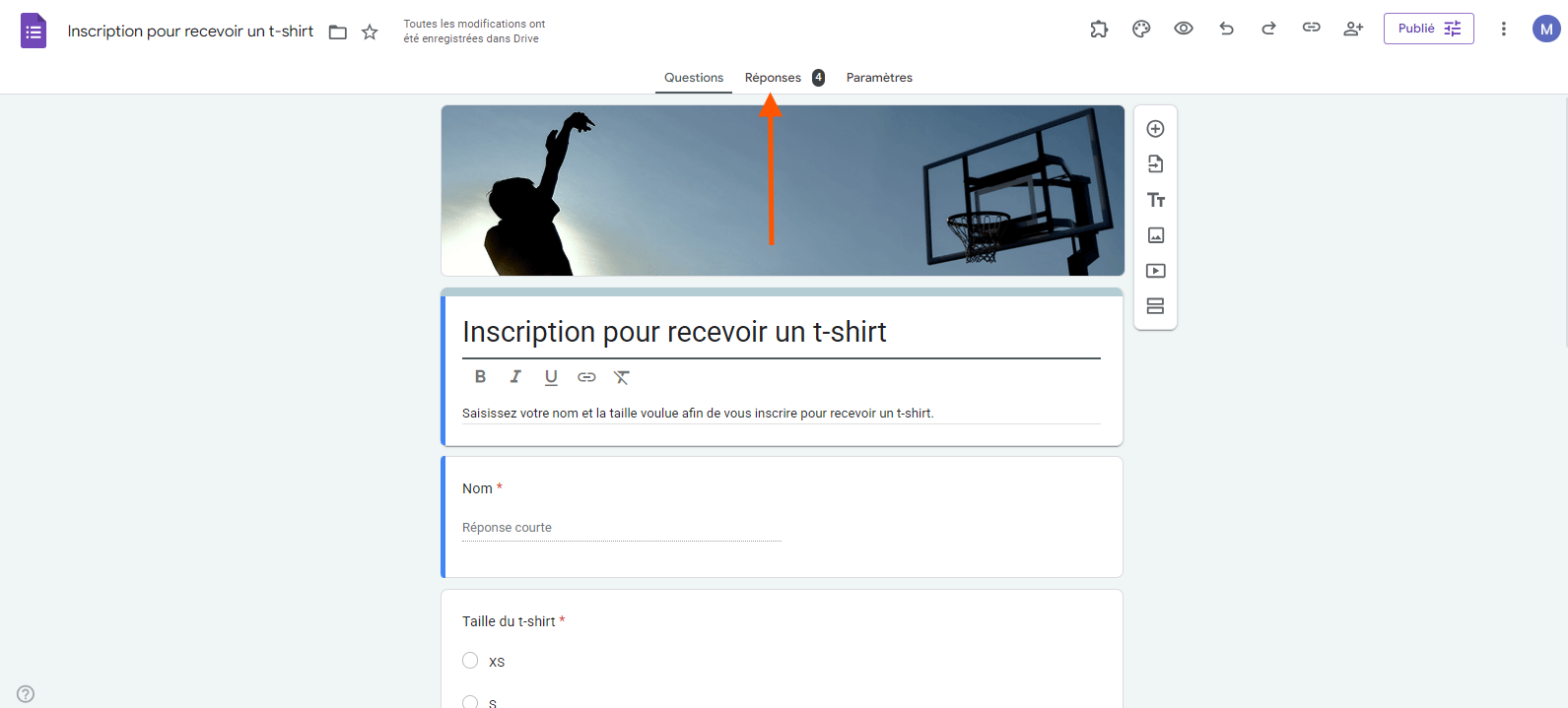- Cliquez sur Publier pour que les répondants puissent accéder à votre formulaire