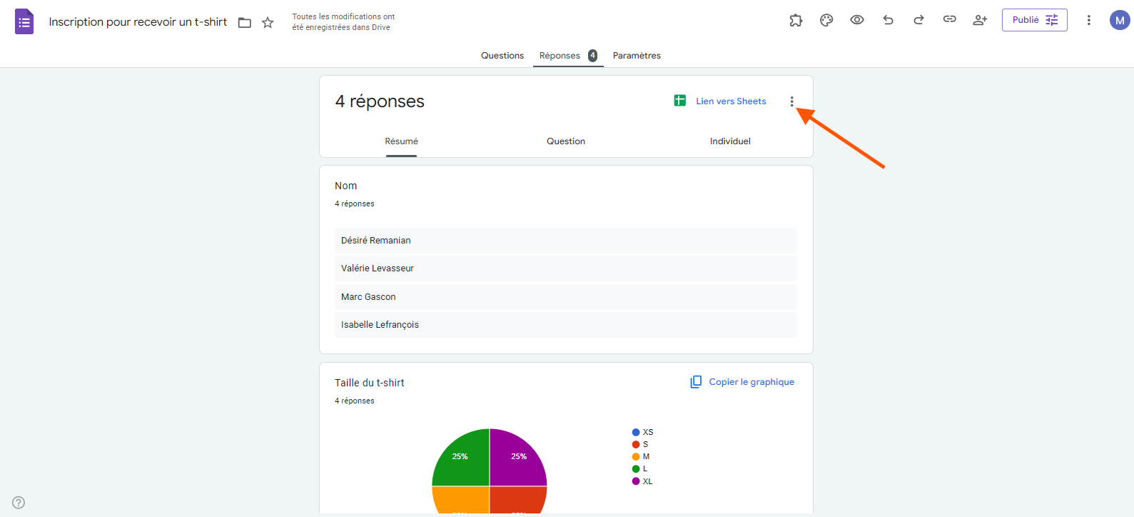 - Cliquez sur l’icône à trois points verticaux dans le coin supérieur droit de l’onglet Réponses.