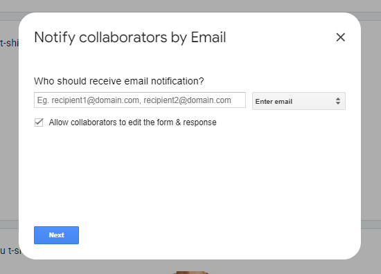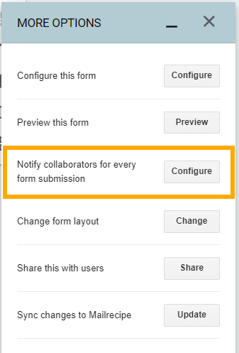- Cliquez sur Configurer à côté de Notify collaborators for every form submission.