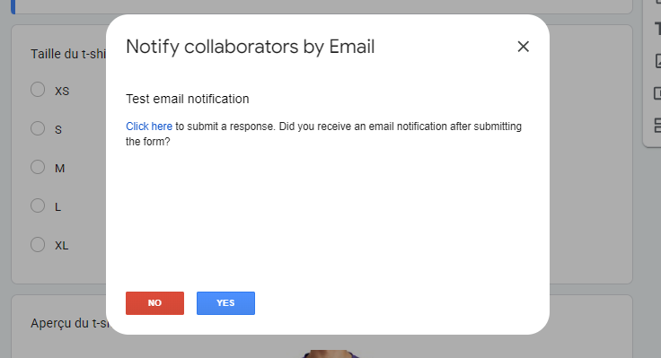 - Cliquez sur Yes pour envoyer un email de test afin de confirmer le bon fonctionnement de la notification.
