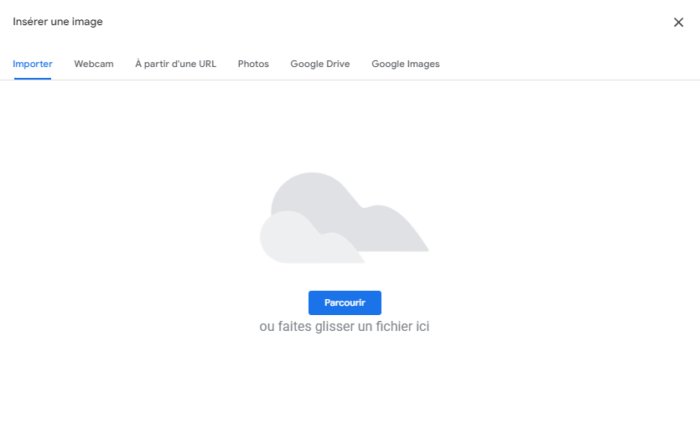 L’option Importer est explicite. L’option Webcam utilise la caméra et l’appareil photo de votre appareil portable. L’option à partir d’une URL vous permet d’ajouter une page web comme source. Si vous choisissez l’option Photos, vous pouvez sélectionner une image dans votre Google Photos. L’option Google Drive vous permet de trouver des images dans votre Drive, et l’option Google Images vous permet d’effectuer une recherche Google sans quitter la page.